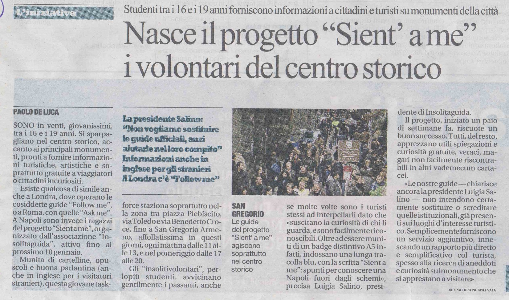 Napoli fuori dagli schemi», precisa Luigia Salino, presidente di Insolitaguida.